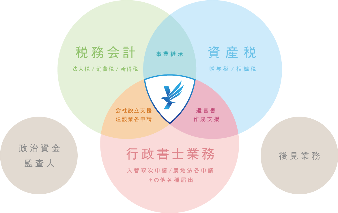 | 保有資格 | 税理士、特定行政書士、入管業務取次行政書士、シニア・ライフ・コンサルタント |